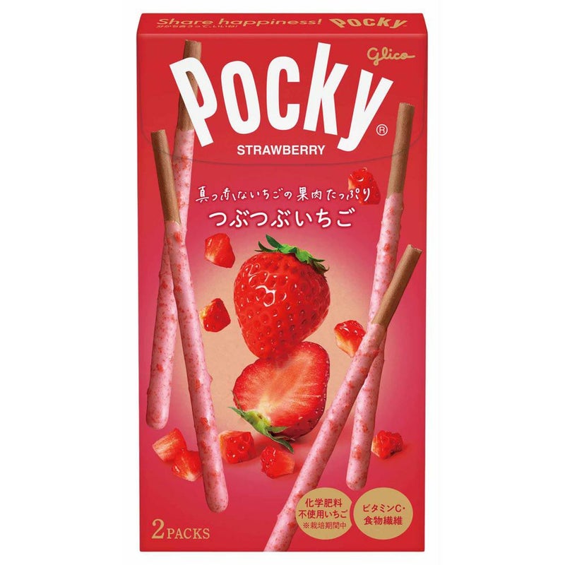 真っ赤ないちごの果肉たっぷり つぶつぶいちごポッキー