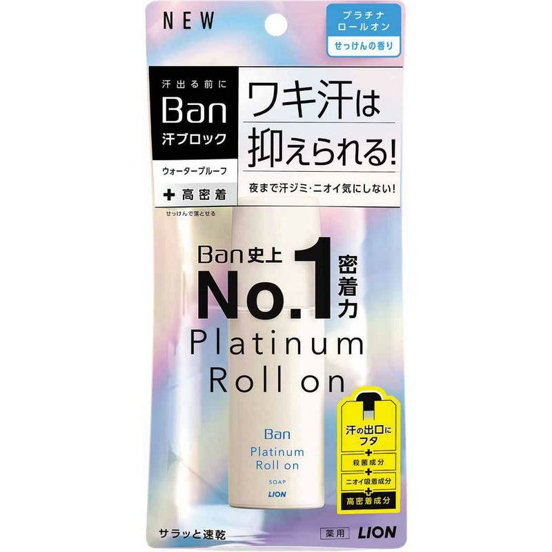 Ban史上No.1密着力・ワキ汗は抑えられる! Ban汗ブロックプラチナロールオンせっけんの香り