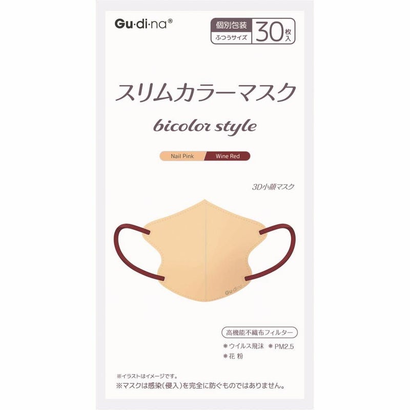 2色の異なるカラー採用しているおしゃれマスク グディナスリムカラーマスクネイルピンク個包装ふつう