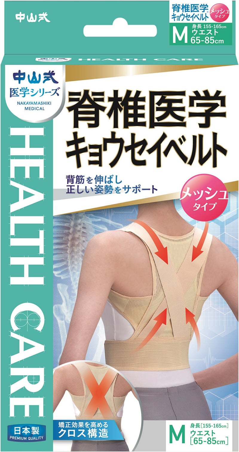 メッシュ地で背筋をスッキリ伸ばせる姿勢補整ベルト。 中山式脊椎医学キョウセイベルトメッシュ