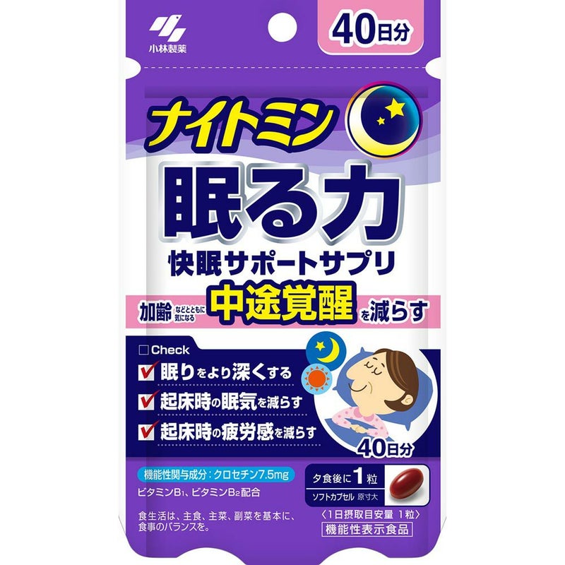 睡眠途中で目が覚める方(中途覚醒)におすすめサプリ ナイトミン眠る力快眠サポートサプリ40日分