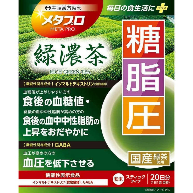 食後の血糖値や血中中性脂肪が気になる方に メタプロ緑濃茶・糖・脂・圧