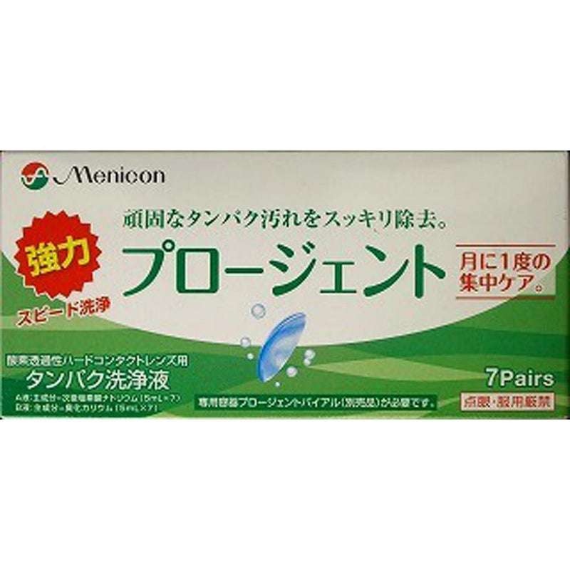 プロ-ジェントは酸素透過性ハードコンタクトレンズに固着したタンパク汚れを除去する強力洗浄液です。