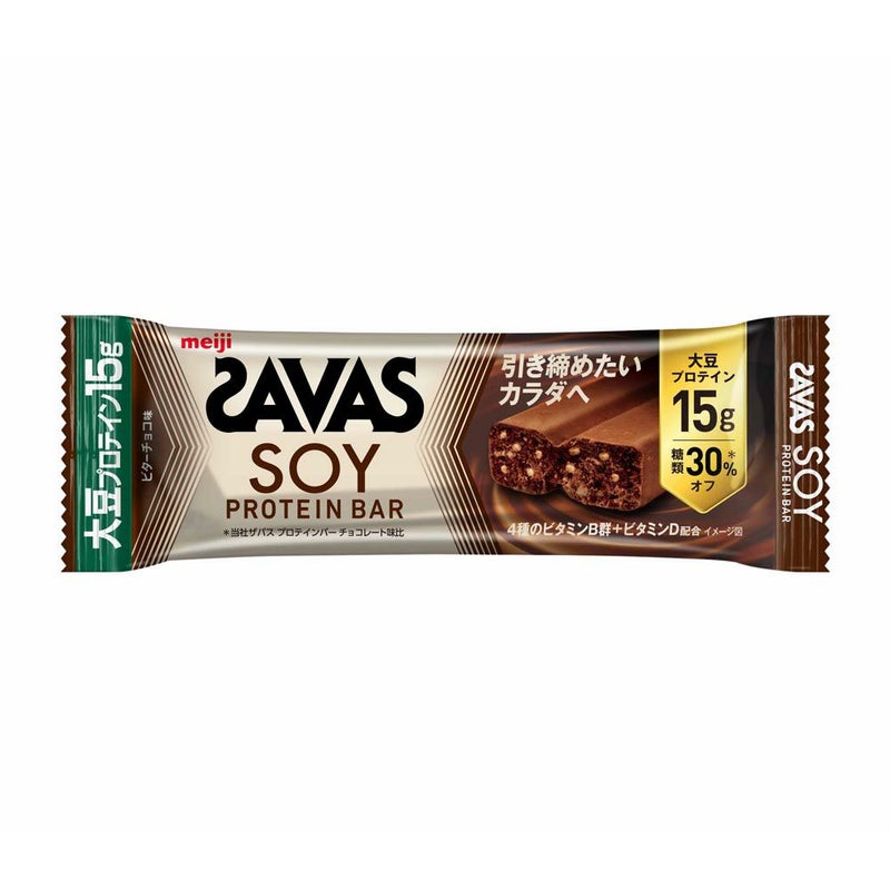 一本あたり、たんぱく質を15g配合 ザバスソイプロテインバービターチョコ味
