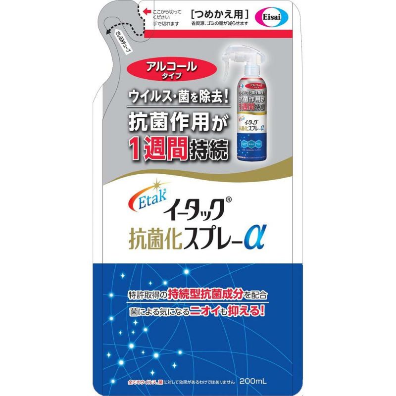 抗菌作用が1週間持続、速乾性を高めたアルコールタイプ イータック抗菌化スプレーαアルコールタイプ詰替用
