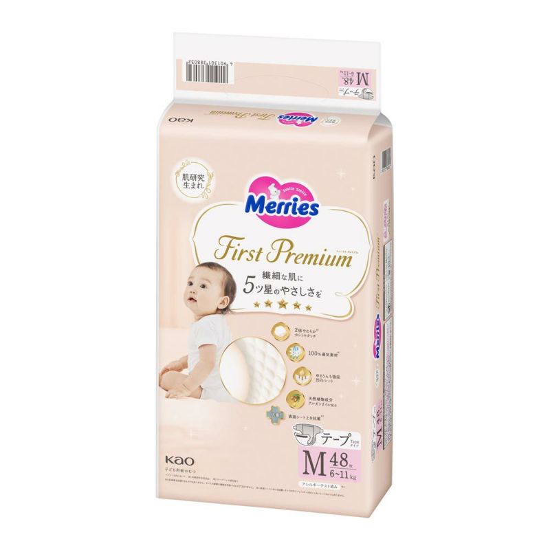 はじめての肌に上質な厳選素材を。 メリーズファーストプレミアムM48枚