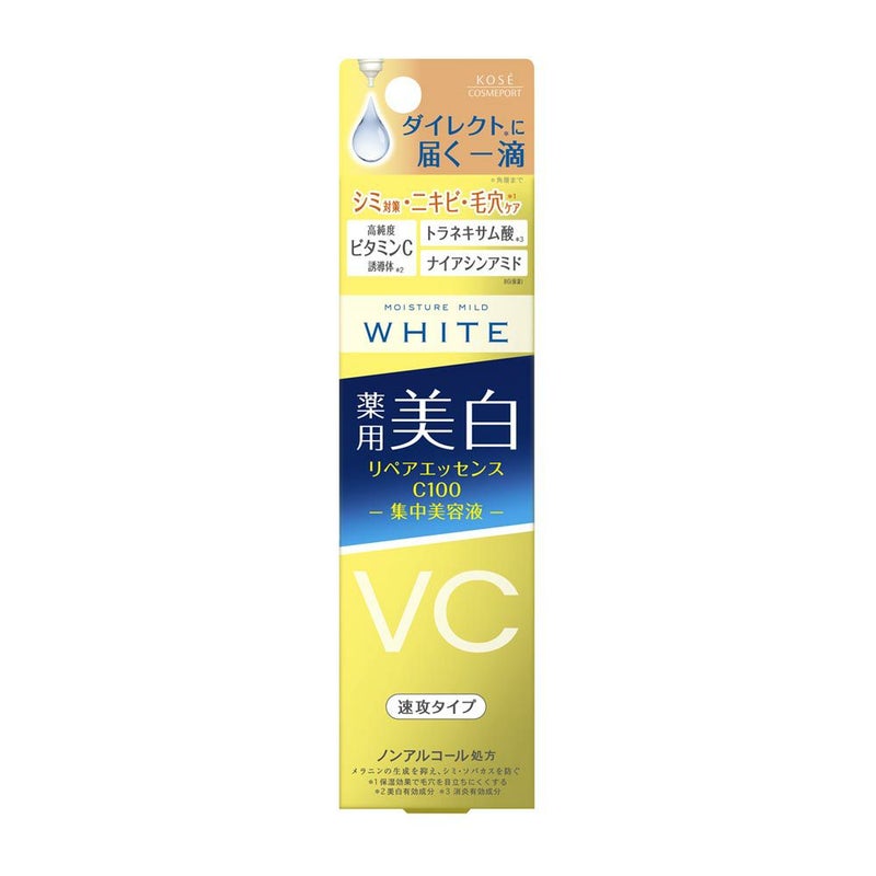 とろっと濃厚な美容液が、シミ・ニキビ・毛穴悩みを徹底ケア!肌悩みへダイレクトに浸透★&リペア*できる高機能美容液です モイスチュアマイルドホワイトリペアC100