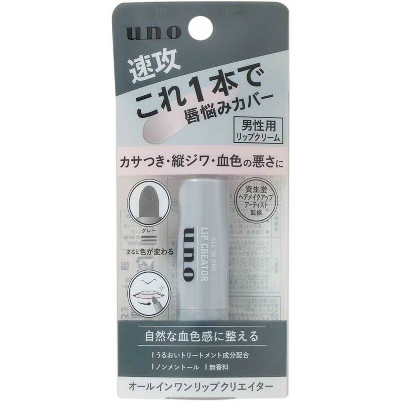 速攻、これ1本で男の唇悩みをカバーカサつき、縦ジワ、血色の悪さをカバーできる男性用リップクリーム ウーノオールインワンリップクリエイター
