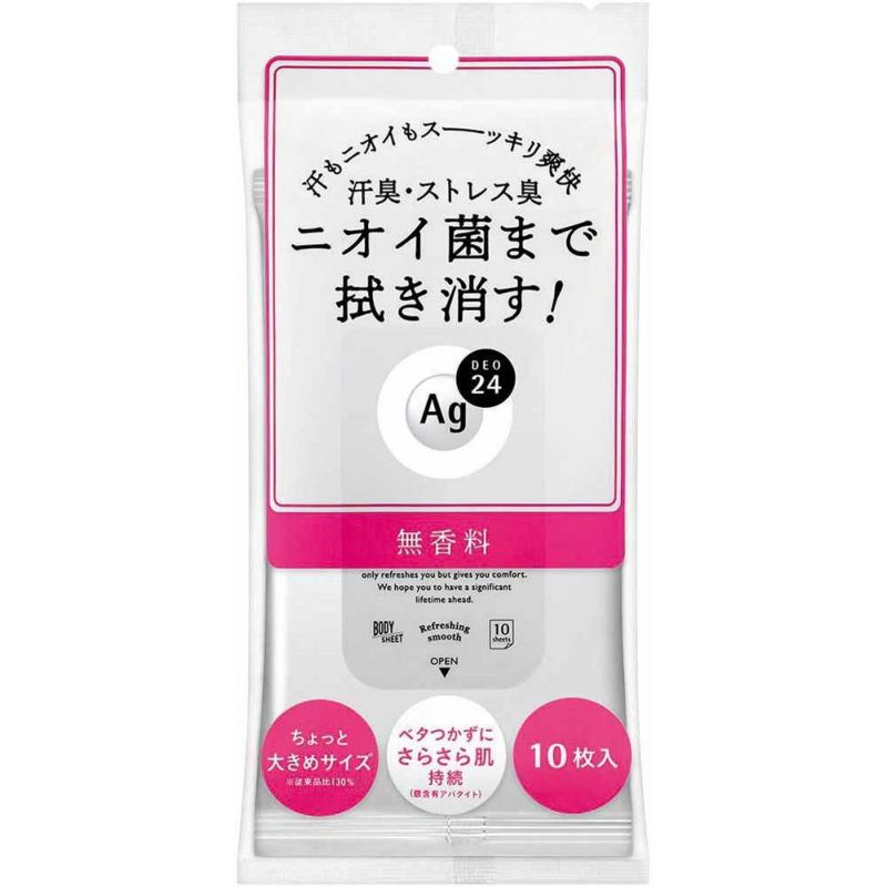 汗臭・ストレス臭・ニオイ菌まで拭き消す爽快シート Ag2デオ4クリアシャワーシート(無香料)10