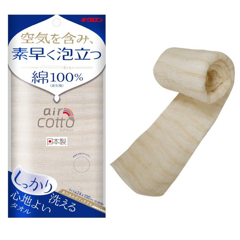 空気を含み素早く泡立つ あわあみボディタオルエアコットしっかり