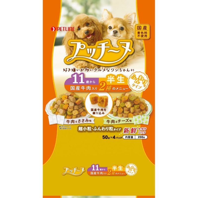食事に悩むワンちゃんのため美味しさをごだわりました いぬのしあわせプッチーヌ11歳から高齢犬ふんわり粒