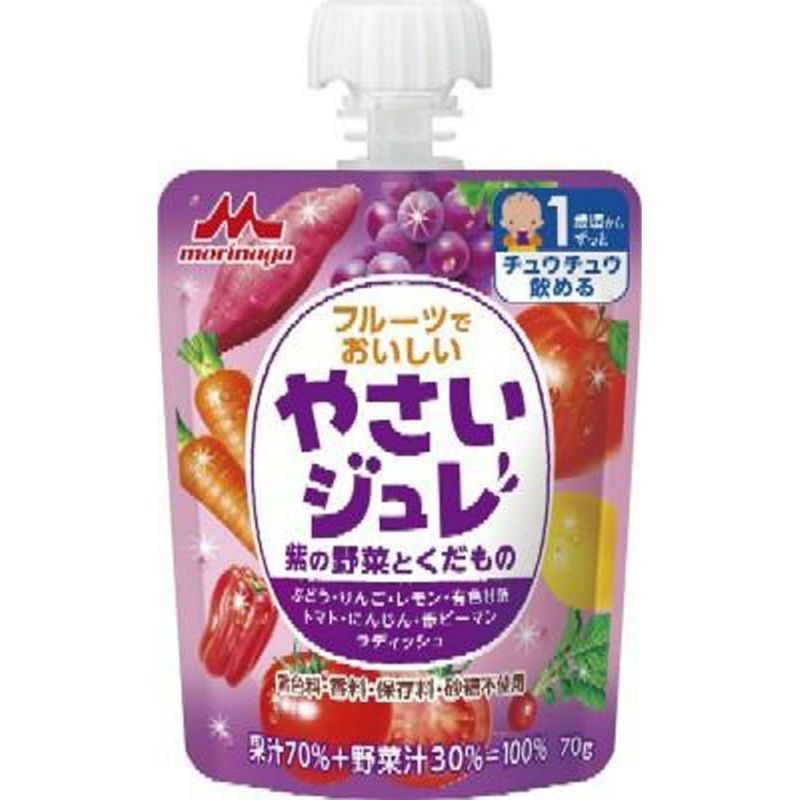 商品詳細8種類の野菜と果物を使用した、野菜汁+果汁=100%のお子さま向けジュレ。お子さまが手に持って食べやすいストロー付パウチで外出時のおやつにもぴったり。