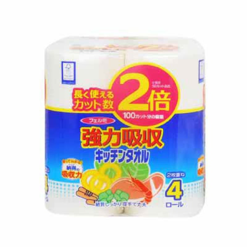 ピュアパルプ100%。安心感のある厚手の紙質と優れた吸収力。 フェルミタオル4R100カット