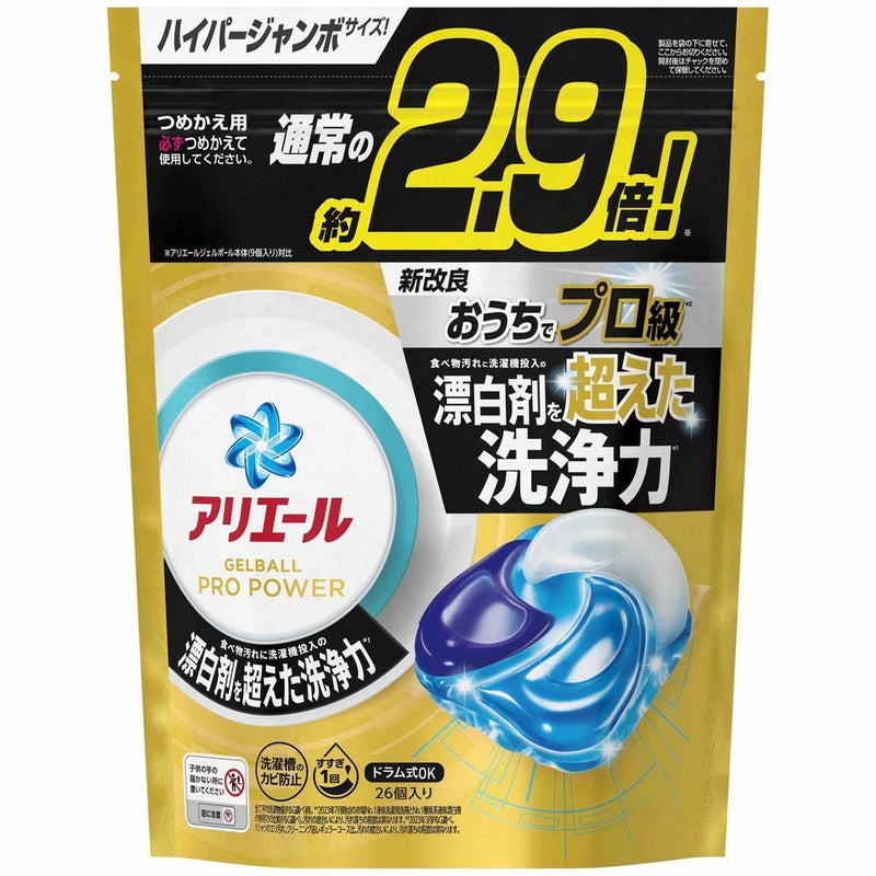 つけおきなしでも、おうちでプロ級の洗浄力。 アリエールジェルボールプロパワーハイパージャンボ