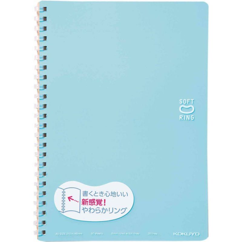 商品詳細コクヨ独自開発の“やわらかリング”を採用したリングノート。やわらかいリングなので、手がリングに当たっても気になりません。「美しく書く」をサポートするドット入り罫線です。