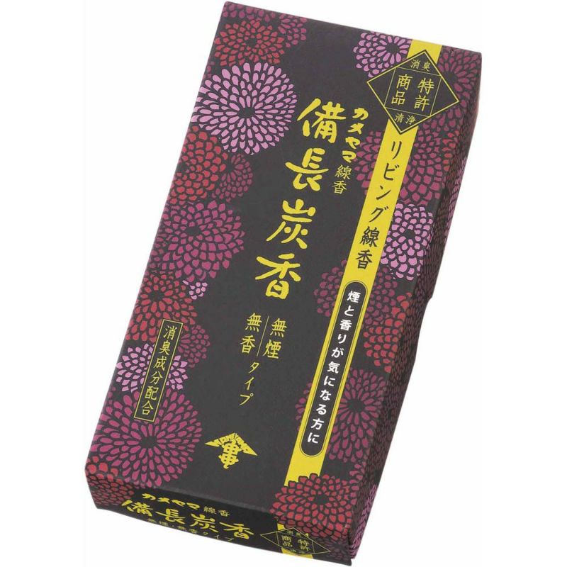 現代の住環境に合わせ、香りを抑えて煙を極々微量に抑えたお線香。備長炭と活性炭さらに消臭剤を配合し、お部屋のにおいを中和消臭。
