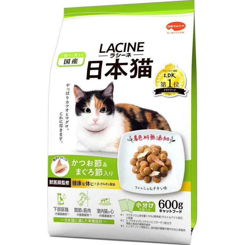 かつお節とまぐろ節入りのおいしい日本猫用フード。 ラシーネ日本猫