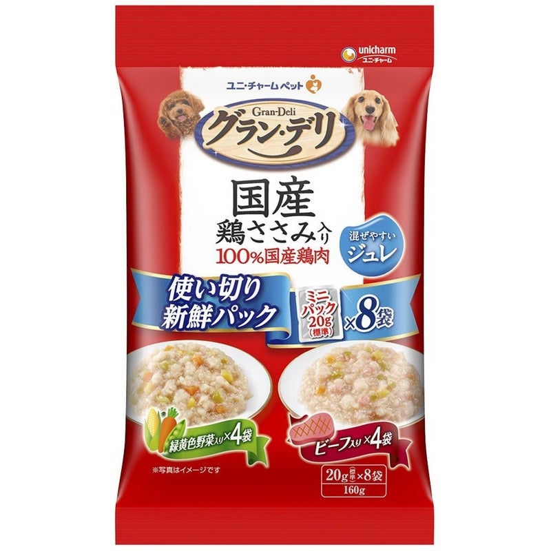 100%国産鶏肉を使用した使い切りウェットフード グラン・デリ国産鶏ささみ成犬用緑黄色野菜&ビーフ