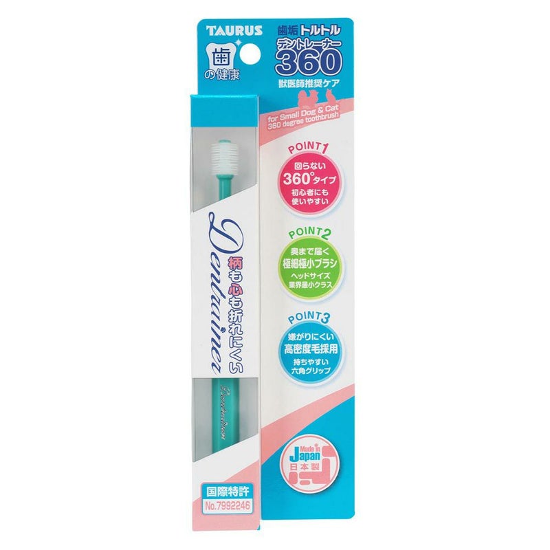 商品詳細●全集360 度の歯ブラシだから、歯垢をしっかり除去し口臭を軽減します。手を回さず横磨きで、手の甲で擦って痛くない強さが磨く力の目安です。●極小ヘッドと糸径(0.06mm) なので、奥まで磨きやすくなっています。誤ってペットが噛んでも歯ブラシの柄や飼い主様の心も折れにくい設計です。●ペットが嫌がりにくい極細毛を全方向に高密度移植(2万本以上)。グリップはどこからでも持ちやすい六角形状になっています。