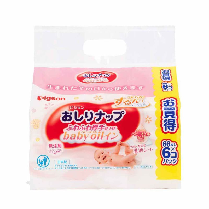 乳液シートでうんち汚れになじんでつるんっと落とす おしりナップふわふわ厚手仕上げベビーオイルイン66枚6P