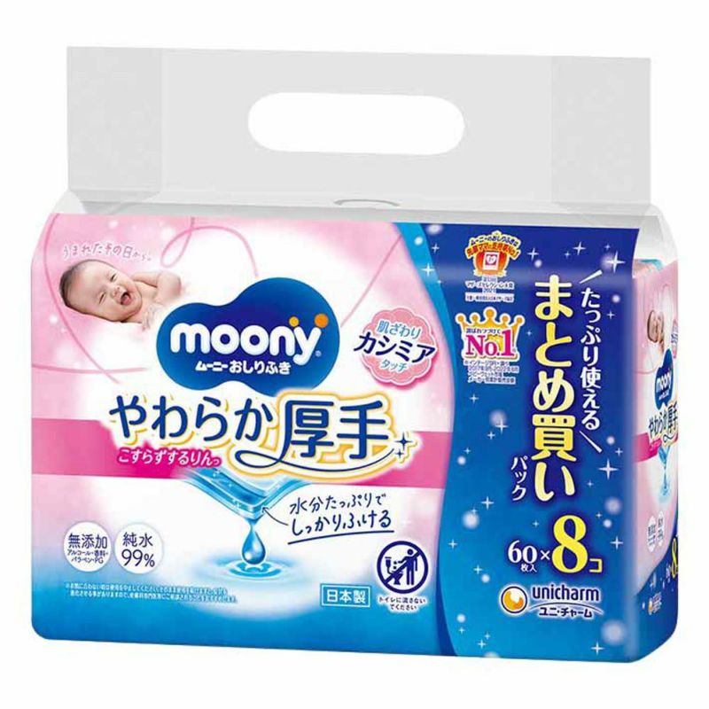 水分たっぷりでしっかりふける ムーニーおしりふきやわらか厚手