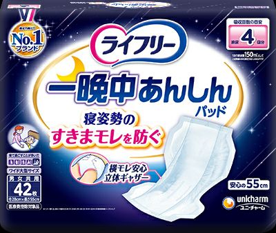 ズレを防いで安心の尿取りパッド ライフリー一晩中あんしん尿とりパッド