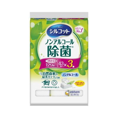 シルコットウェットティッシュ本体容器の詰替用3個パック。 シルコットノンアルコール除菌