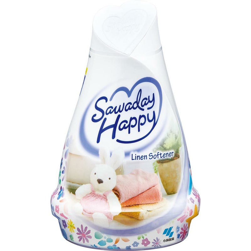 かわいいデザインと容器形状のお部屋用芳香剤 サワデーハッピーリネンソフナー