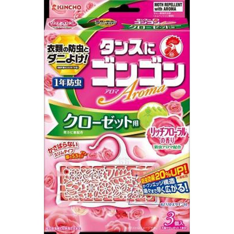 ダニよけ効果をプラスした衣類用防虫剤。 ゴンゴンアロマクローゼット用Nリッチフローラル